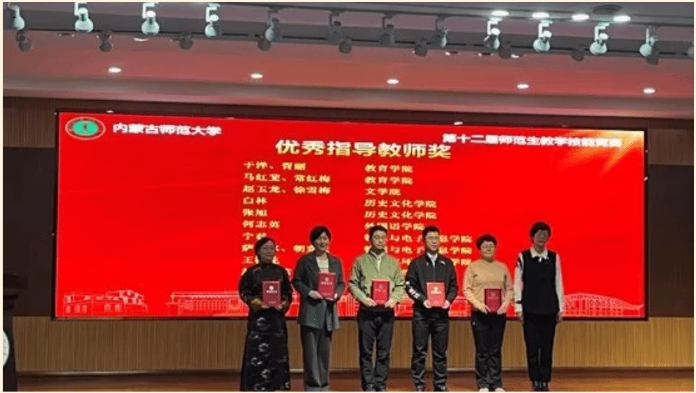 在乌兰巴特尔、常月明、赵伟、图布新巴雅尔几位老师的悉心指导下,公司四名参赛选手均不负众望,斩获佳绩。其中,2021级地理科学免费师范生班的杨振宇同学荣获甲类理科组一等奖;2022级地理科学汉一班的郭思彤同学、2022级地理科学蒙一班的张阿露思同学以及2022级地理科学蒙二班的娜荷芽同学,分别在甲类理科组和乙类理科组中荣获三等奖。此外,赵伟老师和常月明老师获优秀指导教师奖。